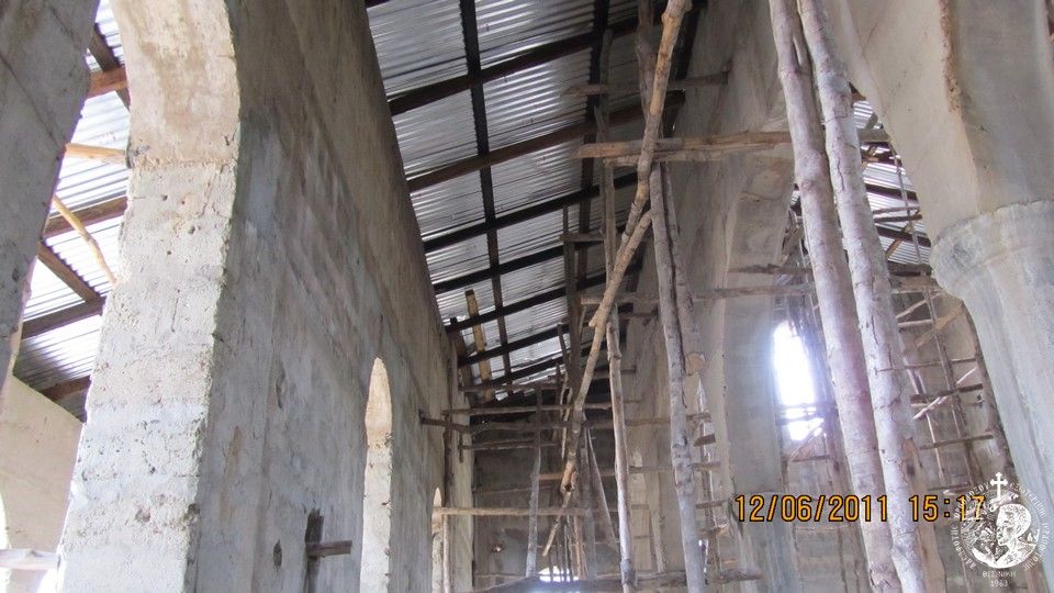 Η εξέλιξη της ανοικοδόμησης οδεύει προς την ολοκλήρωσή του. Τον Ιούνιο του 2011 ολοκληρώθηκε η στέγαση του Ναού, ενώ υπολείπεται το βάψιμο και η επίπλωσή του. Μέχρι στιγμής, η Αδελφότητά μας έχει καταβάλει για το έργο αυτό 75.000 ευρώ.