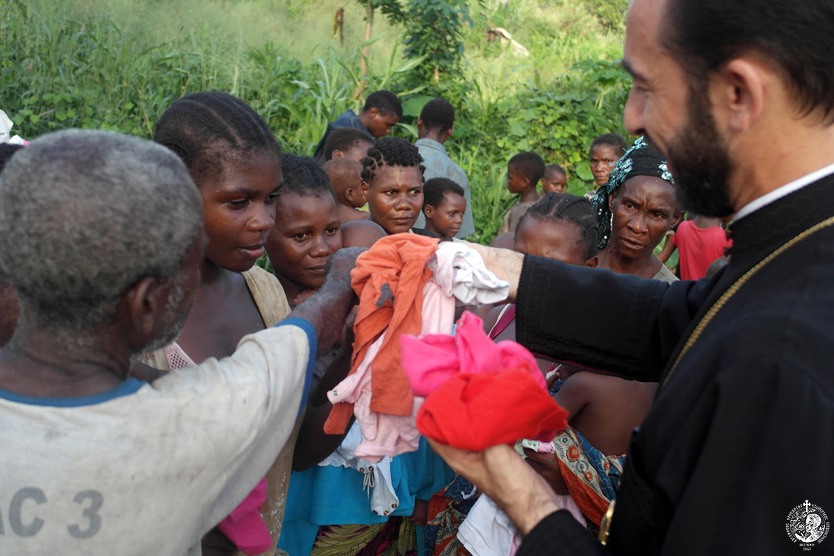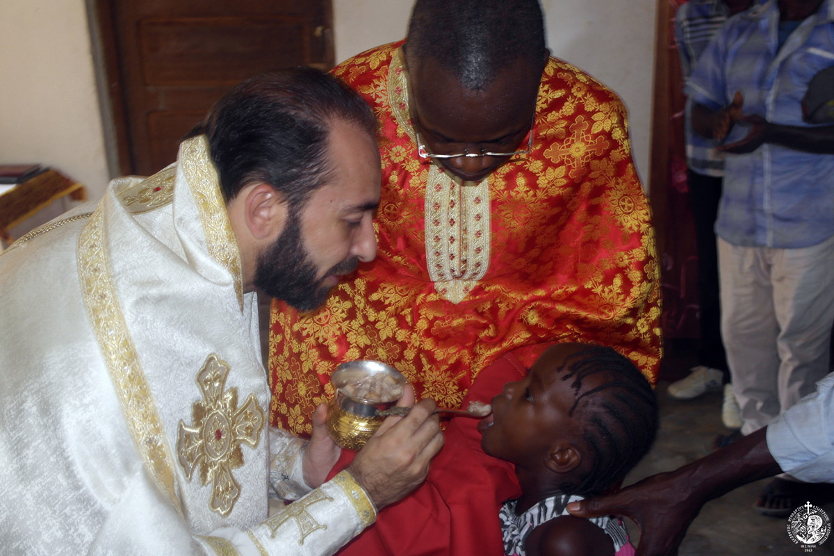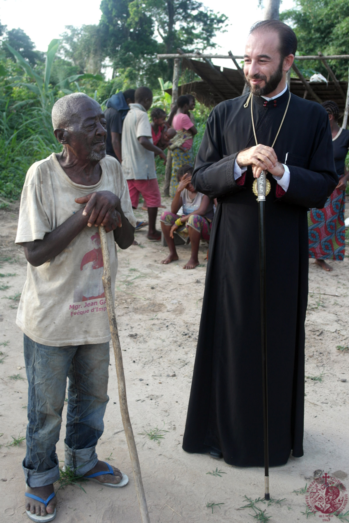 Στο αεροδρόμιο τον ανέμενε ο Εφημέριος π.Σέργιος Mabelemo με τα μέλη της ενοριακής επιτροπής, ενώ ο γηραιός ορθόδοξος αρχηγός της φυλής των Πυγμαίων τον υποδέχθηκε στο μισθωμένο σπίτι, που χρησιμοποιείται ως προσωρινός χώρος λατρείας.