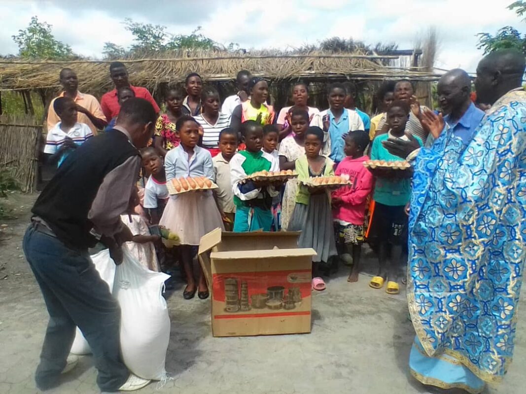 Με την Χάρη του Αναστάντος Κυρίου μας Ιησού Χριστού, τις Ευχές του Μακαριωτάτου Πατριάρχου μας κ.κ. Θεοδώρου Β’, την πολύτιμη βοήθεια της αδελφής Βασιλικής Αλετρά, βεβαίως και την συνεργασία των ιθαγενών ιερέων της Ιεράς μας Επισκοπής, αγαπητοί μου συνεργάτες της Αδελφότητας Ορθοδόξου Εξωτερικής Ιεραποστολής, μοιράσαμε πολλά πράγματα από το κοντέινερ που μας στείλατε.