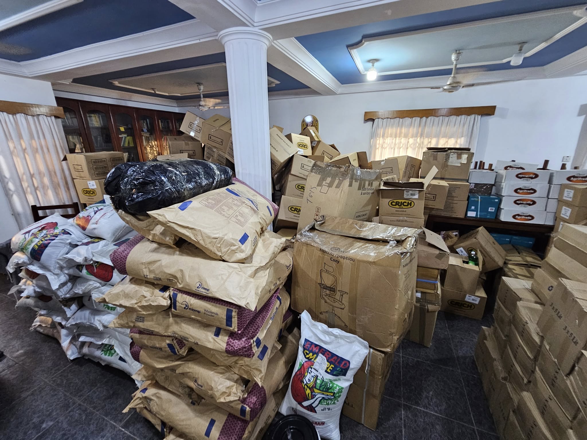Από τις πρώτες πρωινές ώρες, νέοι και συνεργάτες της Ιεράς Μητροπόλεως Άκκρας εργάστηκαν με προθυμία και ενθουσιασμό, συμβάλλοντας στο άδειασμα του κοντέινερ και στη μεταφορά όλων των ειδών στις αποθήκες του Καθεδρικού Μεταμορφώσεως του Χριστού στην Άκκρα.